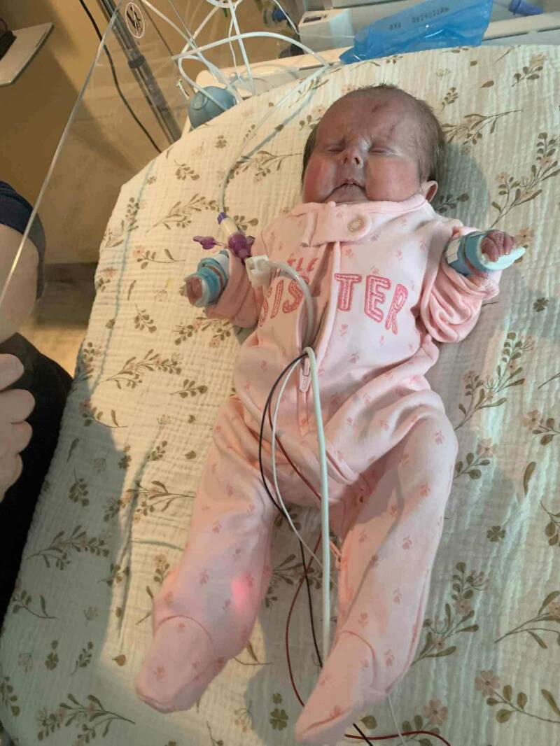 Oakleigh's surgery went well! She tolerated everything well and is healing quickly! They placed her G-tube (feeding tube) on Monday at around 12:30p and she was back in the room with us around 1:30p. She had to fast for 6 hours after surgery to allow things to start working again and then they began giving her small amounts until they saw that she was tolerating it well. She was a champ! She has been dealing with reflux, which was an issue before surgery as well. They are trying different things to see if they can get it under control and keep more in her belly. Oakleigh has grown and is finally 4lbs 2oz! Still so tiny but she keeps growing! We still don't have a diagnosis and will have quite a few follow up appointments after discharge. We ask for prayer for us and wisdom as we navigate all of those things. This has been a journey but God is faithful! We have seen Him working many times. In order to come home, they are working on what feeding regimen will keep her growing and not upset her tummy too much as well as passing a carseat test. She will have to sit in a carseat for 2 hours and not have dips in heart rate or oxygen. We would appreciate prayers for that as well! We don't have a date for discharge yet but we are getting closer! Thank you all once again for your texts, prayers, and encouragement! We are truly blessed to be a part of the community, church, and family we are.